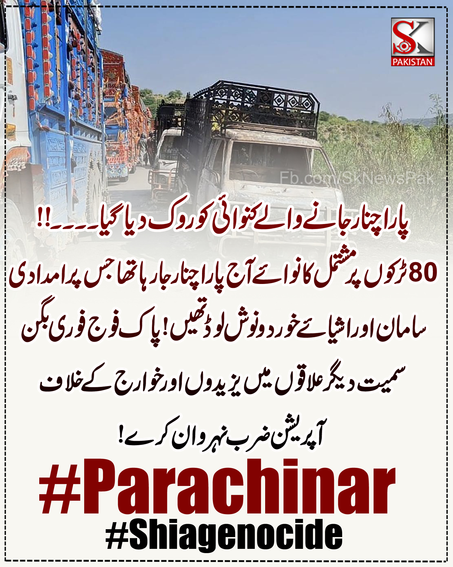 پارا چنار جانے والے کنوائی کو روک دیا گیا ۔۔۔۔!!80 ٹرکوں پر مشتمل کانوائے آج پارا چنار جا رہا تھا جس پر امدادیسامان اور اشیائے خورد و نوش لوڈ تھیں !